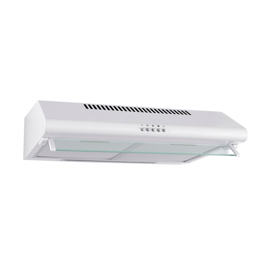 Yläkaapin alle asennettava seinäliesituuletin, Mukana 2 moottoria - Valkoinen / valkoinen / lasi - 600 mm