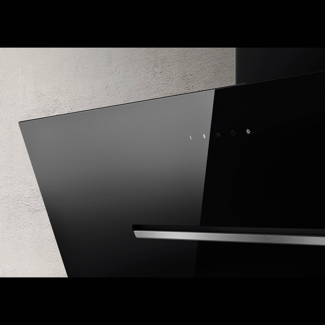 Seinälle asennettava viisto liesituuletin - Sisäänrakennetulla moottorilla - Musta - Leveys 600 mm - Energialuokka A