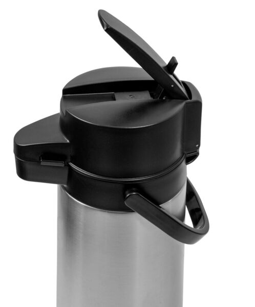 Teräspumpputermos, jolla hyvä lämmönpitävyys. Helppo täyttää ja tyhjentää. Tuotteen sisällä oleva pumppumekanismi helpottaa puhdistusta. Pumppukahvaa voi käyttää yhdellä kädellä. Se lukittuu ja nousee ylös helposti. Ei sisällä lasiosia ja siksi termoksen sisälle voi laittaa jääpaloja, kun tarjoilee kylmiä juomia.