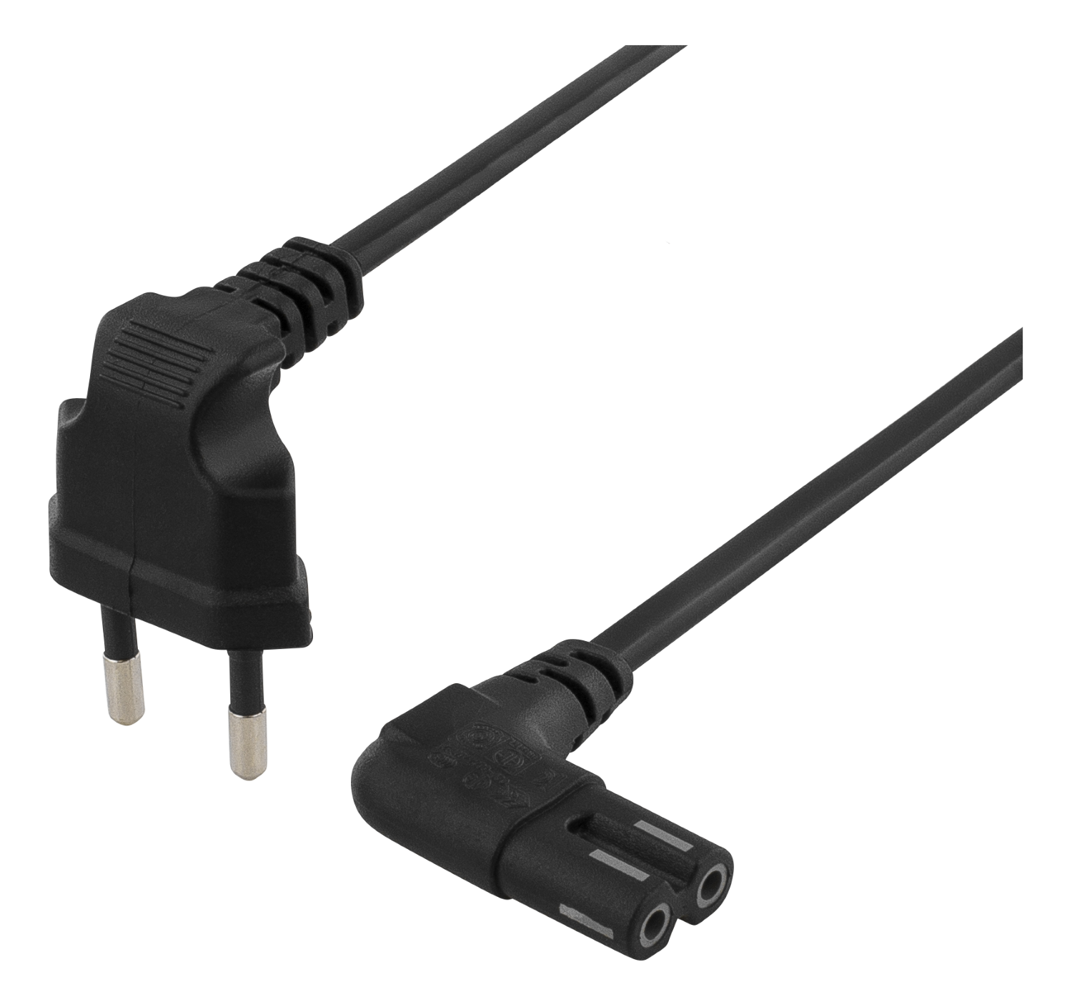 Ungrounded device cable 3m angled CEE 7/16 IEC 60320 black