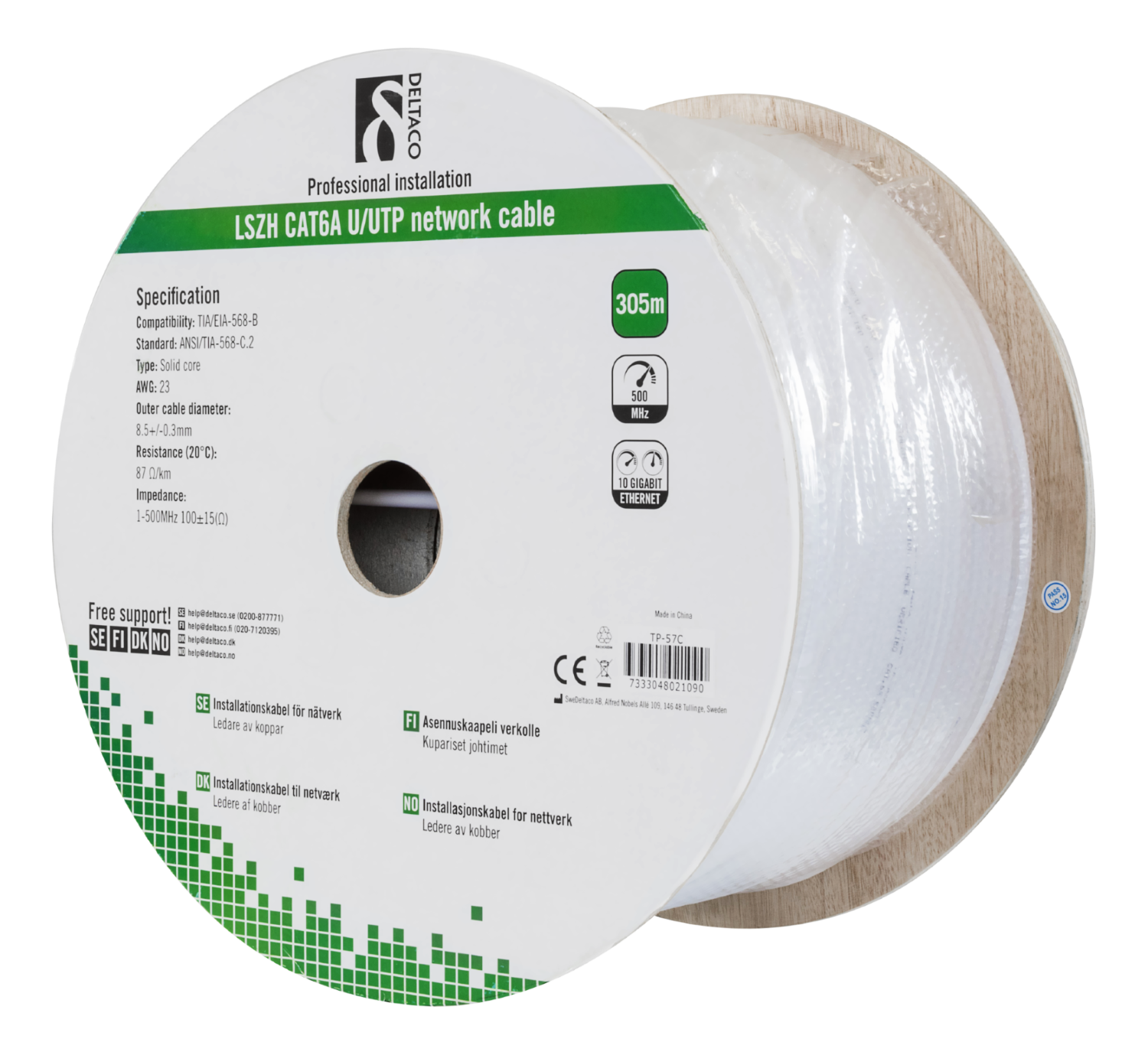 U/UTP Cat6a installation cable, 305m, 500MHz, LSZH, white